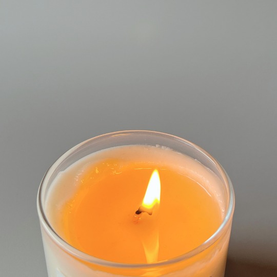 オレンジ色の穏やかな火、とろんと溶けたソイワックス